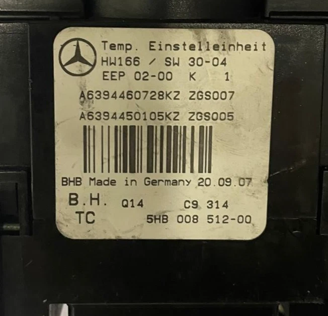 Heating/Air Conditioning Control MERCEDES-BENZ VITO VIANO A6394460728KZ