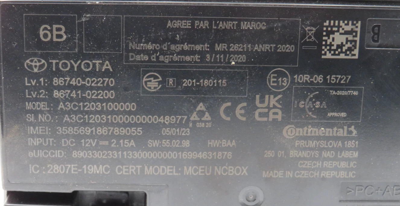 TOYOTA YARIS Electronic Module 8674002270 A3C1203100000 8674102200 WARRANTY