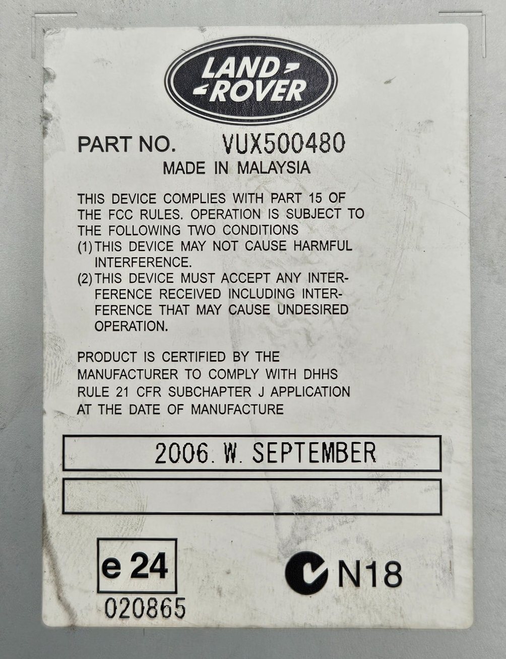 Sistema Audio Radio CD LAND ROVER RANGE ROVER VUX500480 GARANTIA